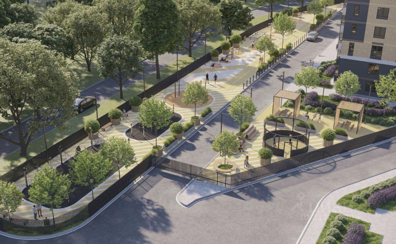 Территория комплекса закрытая, на ней ведется видеонаблюдение. Во дворах спроектированы современные детские и спортивные площадки, расположены зоны отдыха, выполнено озеленение. Для активного вида отдыха предусмотрена Workout зона и тренажеры на площадках. Для автовладельцев продуман подземный паркинг.
