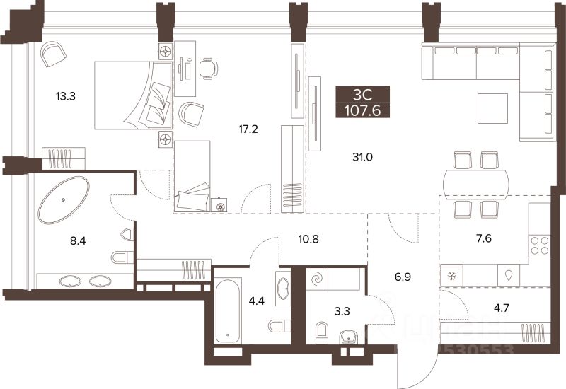 Продаётся 3-комнатная квартира в строящемся доме (Башня 1 и секция 1), срок сдачи: III-кв. 2029, общей площадью 107.6 кв.м., на 15 этаже. Новый жилой комплекс ''Сахаров Парк'' от Специализированного застройщика ''ДомСтрой-Барнаул22'' расположен по адресу: г. Барнаул, Социалистический пр-кт.