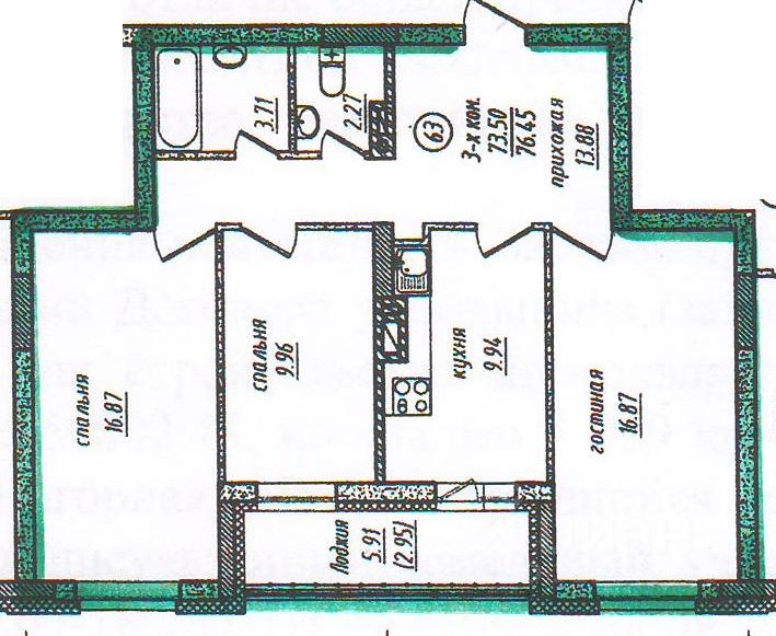 Квартира расположена на удобном 8 этаже в 15-этажном доме повышенной комфортности. Материал стен КИРПИЧ. Общая площадь квартиры 76,5 кв.м.