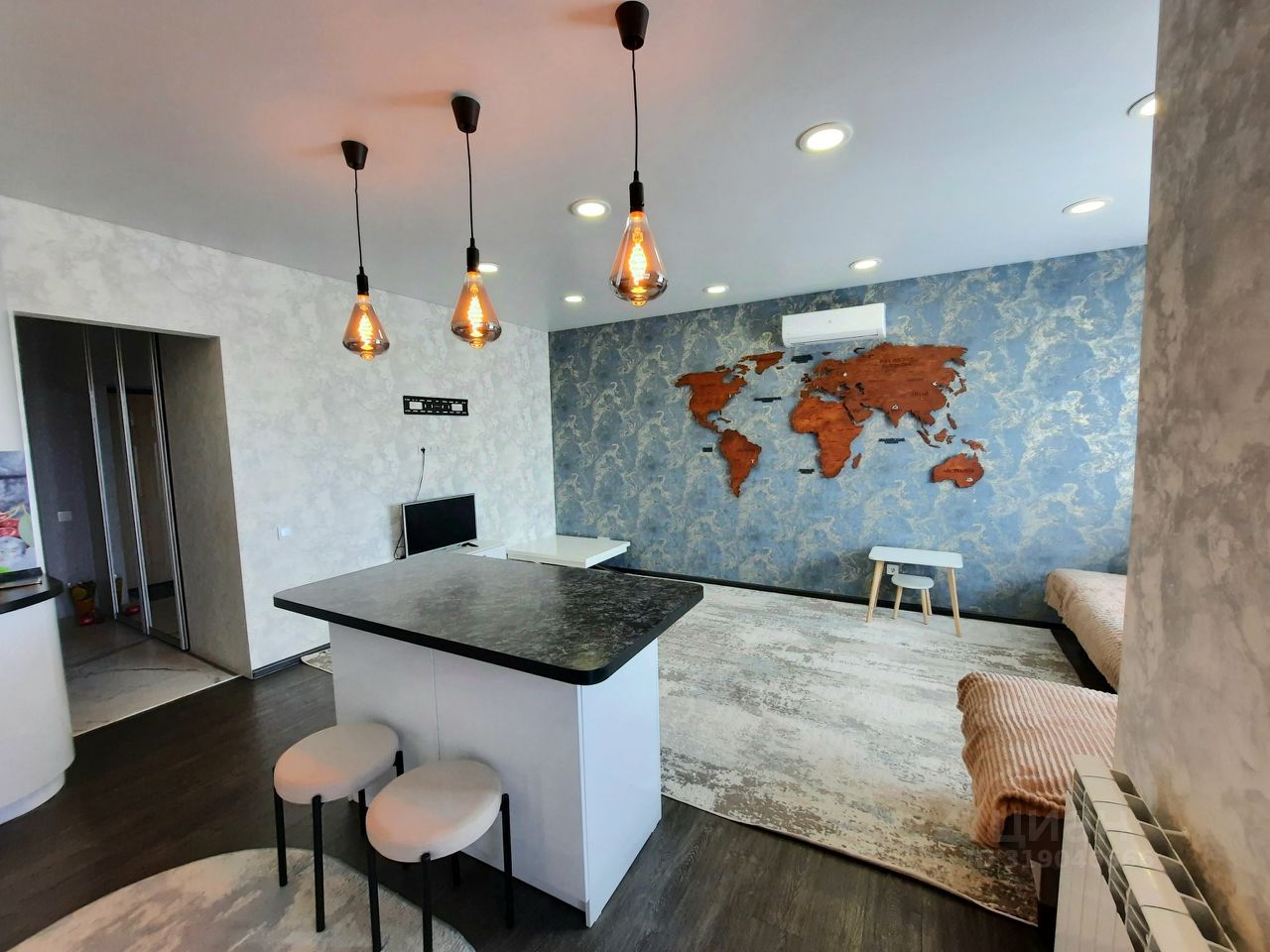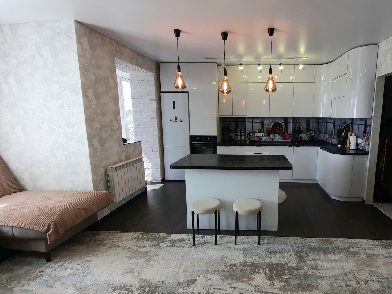 В стоимость квартиры входит: вся встроенная мебель, выполненная на заказ по индивидуальному проекту, системы хранения, ванная мебель, двуспальная кровать, новая современная бытовая техника.