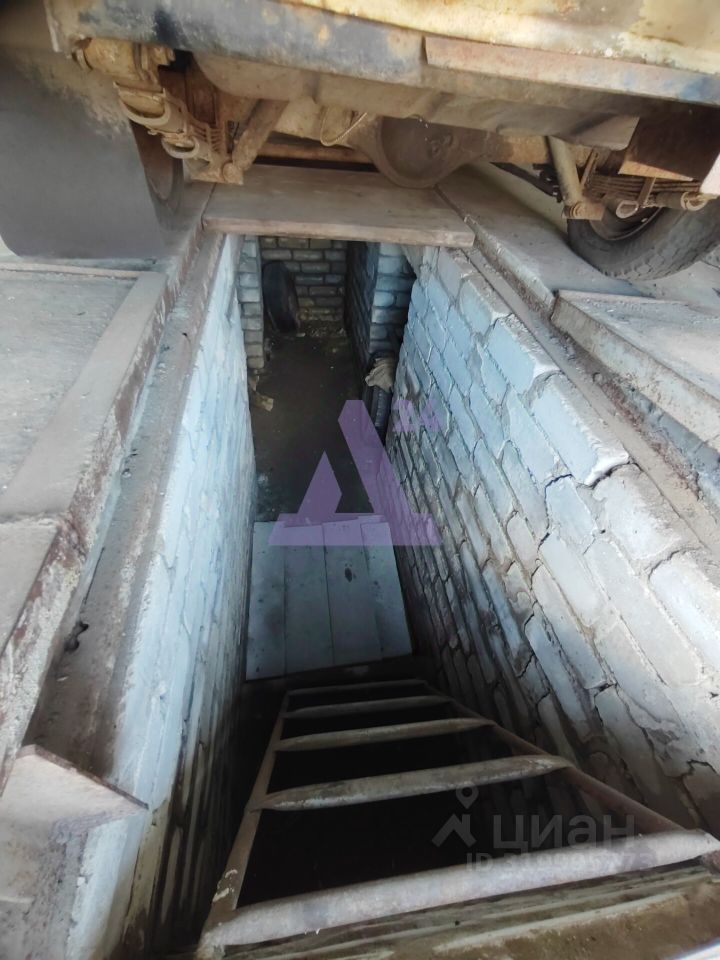 Этот гараж — из тех, что строились надолго. Классика советской надёжности: кирпичные стены, добротная железобетонная плита на крыше, металлические ворота. Глубокая смотровая яма с двумя нишами — не просто удобство, а реальная возможность заниматься автомобилем, как хобби, или сэкономить на обслуживании.