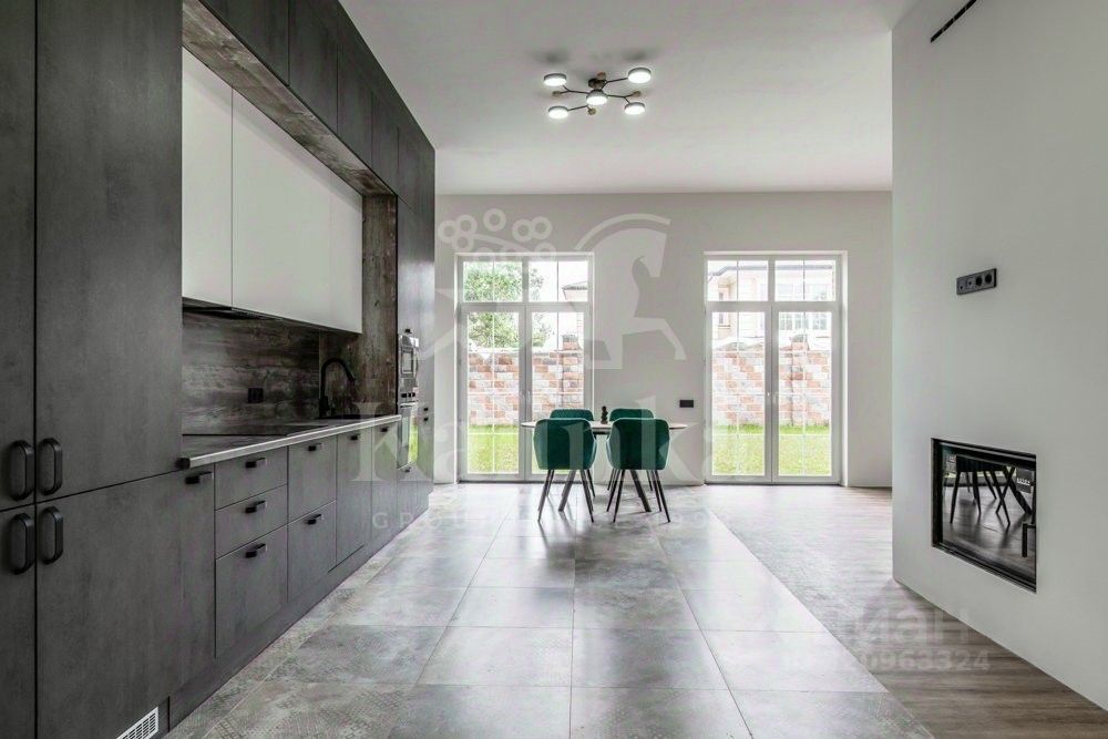 В доме 4 спальни с ванными комнатами и гардеробными. Гостиная, объединенная с кухней площадью 70 квадратных метров, в которой установлен камин и есть выход на две стороны. Также в доме есть сауна, полностью оборудованная и готовая к эксплуатации.