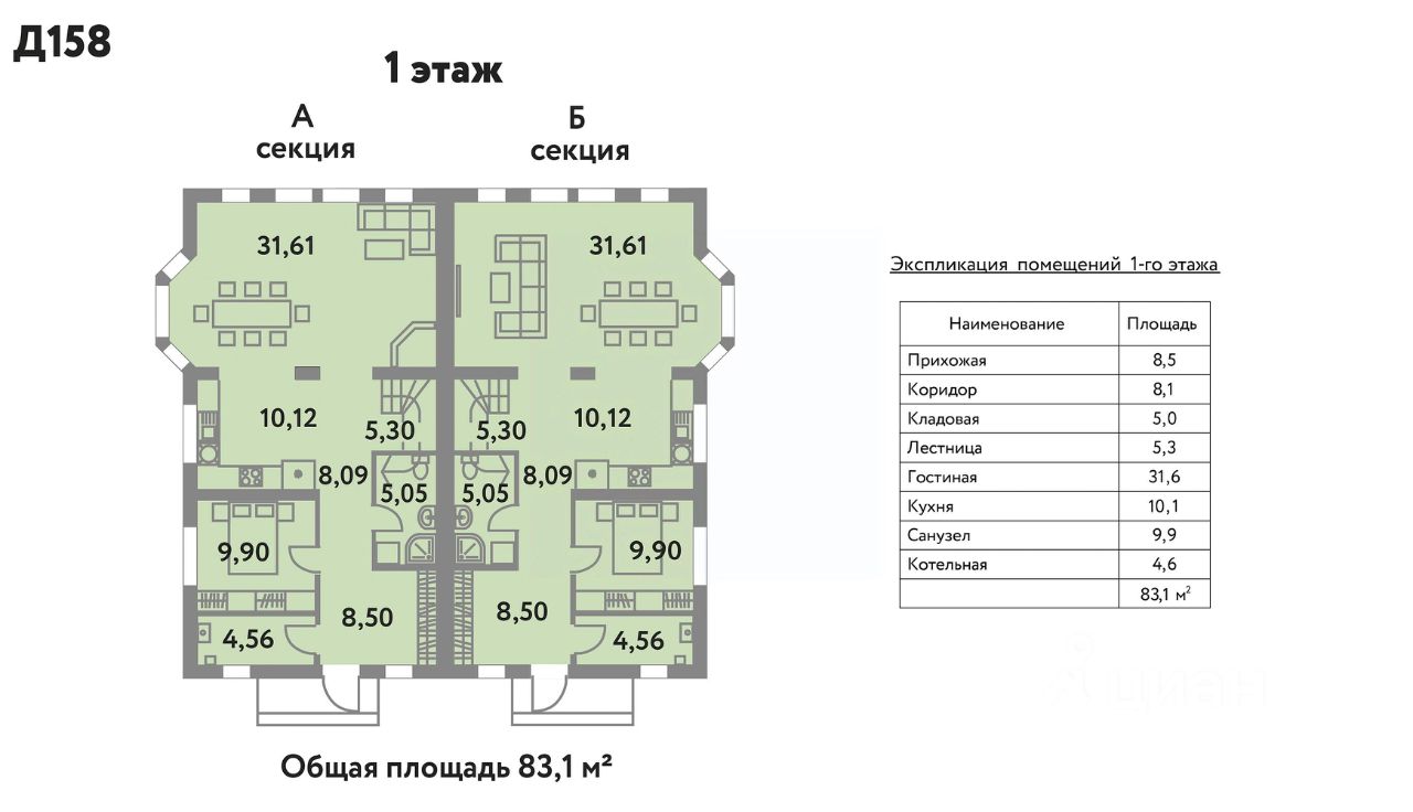 Общая площадь158 м2