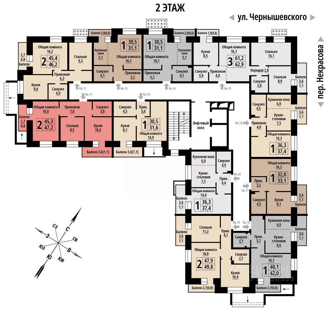 продам 2-к, Чернышевского, 399 086 000 ₽