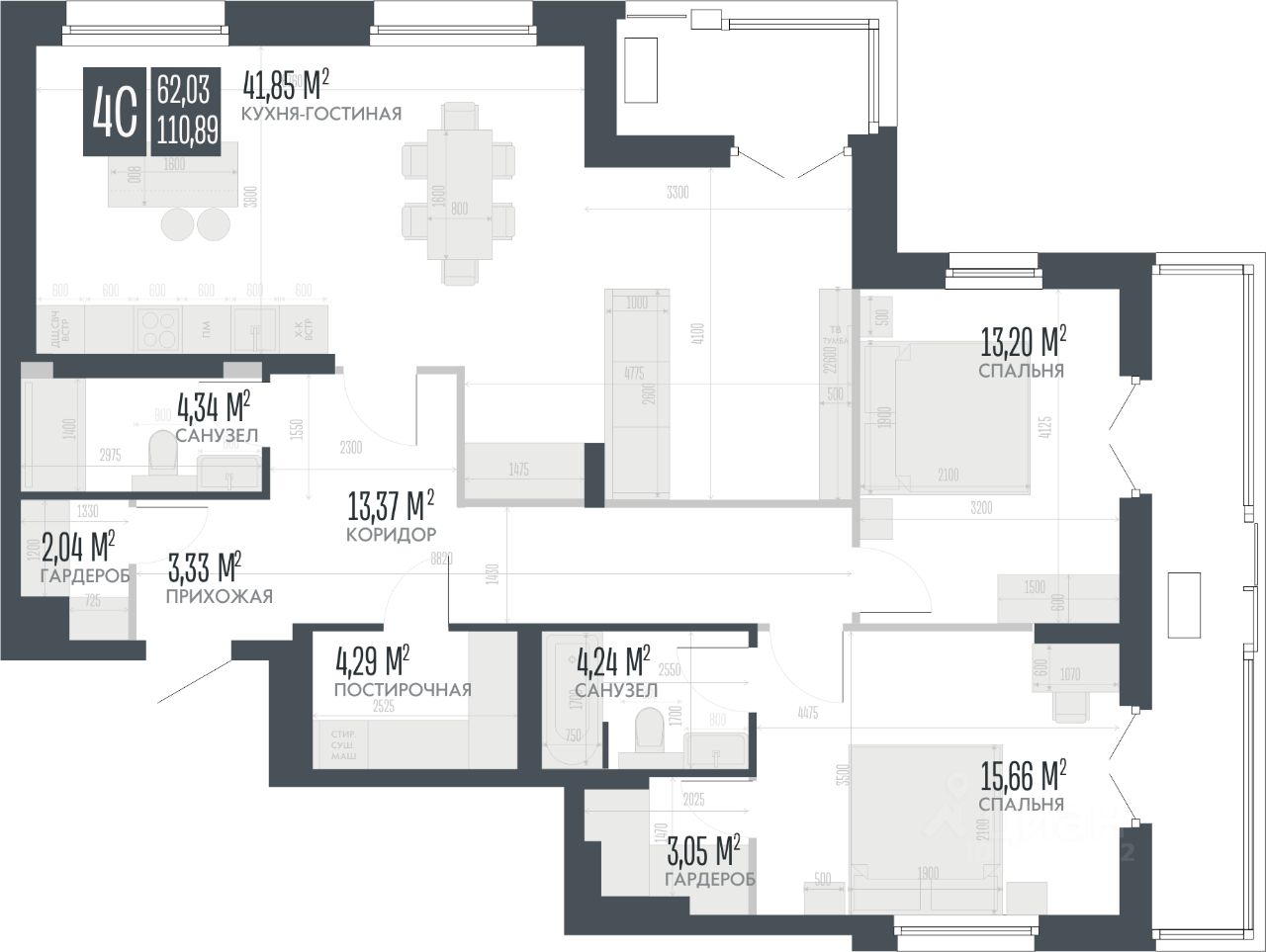 Продаётся 4-комнатная квартира в строящемся доме (Дом 36в (блок-секция 1,2)), срок сдачи: III-кв. 2026, общей площадью 110.89 кв.м., на 4 этаже. Новый жилой комплекс ''Opera Residence'' от Специализированного застройщика ''Легион'' расположен по адресу г. Барнаул, Сибирский проспект.