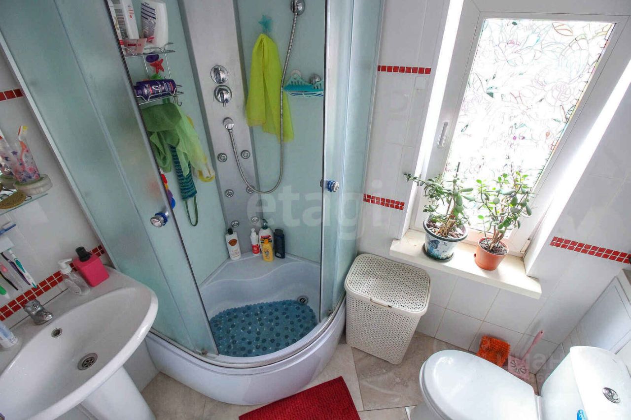 В доме 5 жилых комнат, кухня, прихожая и котельная. Комнаты смежно-изолированные, внутренние стены не несущие, возможна перепланировка. Подогрев пола встроен в систему отопления. Сан-узел совмещённый, отделка кафель, теплый пол, есть окно.