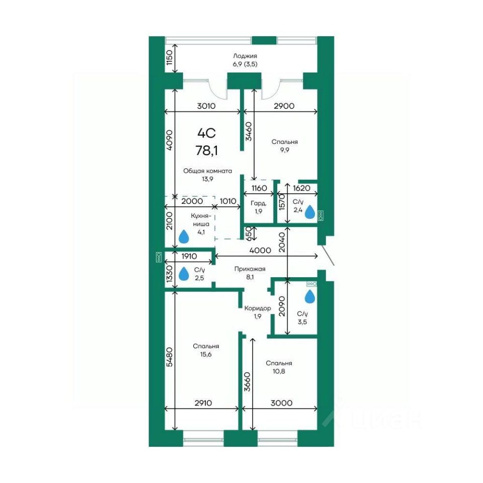 Общая площадь78,1 м2