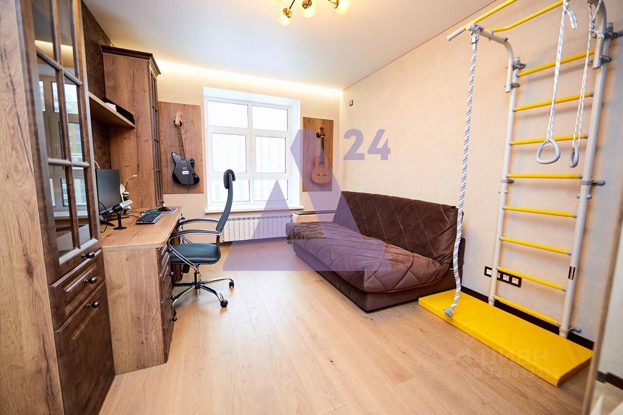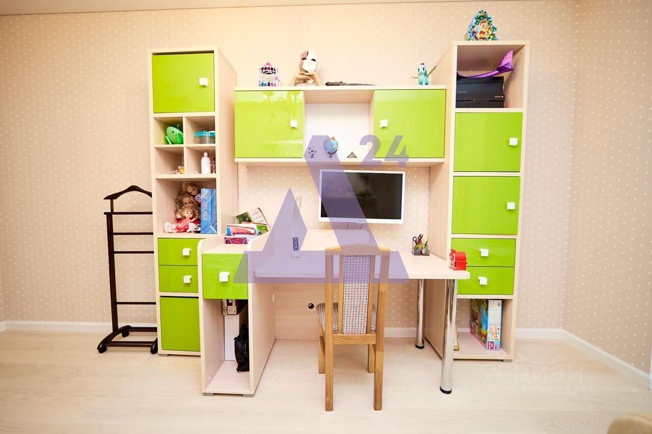 Дизайнерский ремонт выполнен с использованием качественных материалов: ровные стены с декоративной отделкой, паркет и керамическая плитка на полу, большие пластиковые окна, заливающие комнаты естественным светом. Из застеклённой лоджии открывается вид на парк и уютный двор.