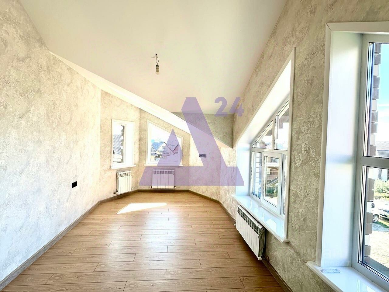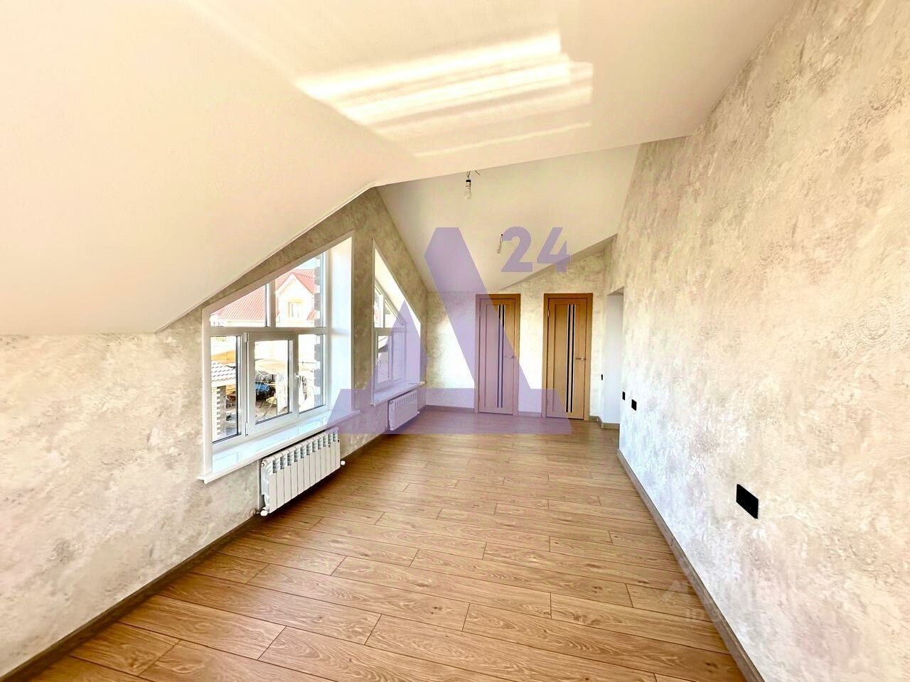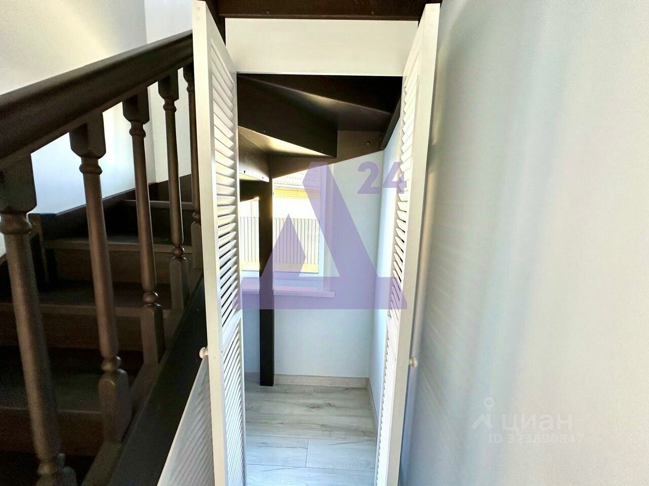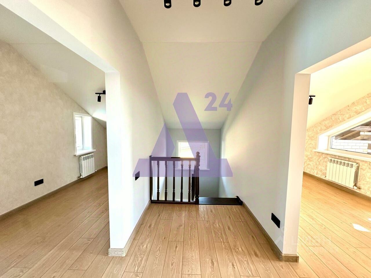 На втором этаже, куда ведёт шикарная деревянная лестница - холл, санузел и три полноценных спальни, одна из них с выходом на балкон, который при желании можно застеклить и утеплить, получив дополнительно зону отдыха или рабочую.