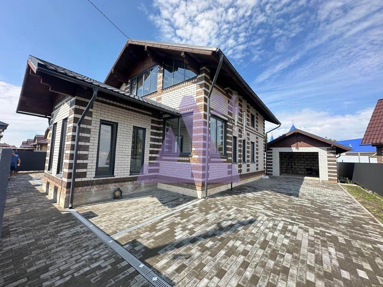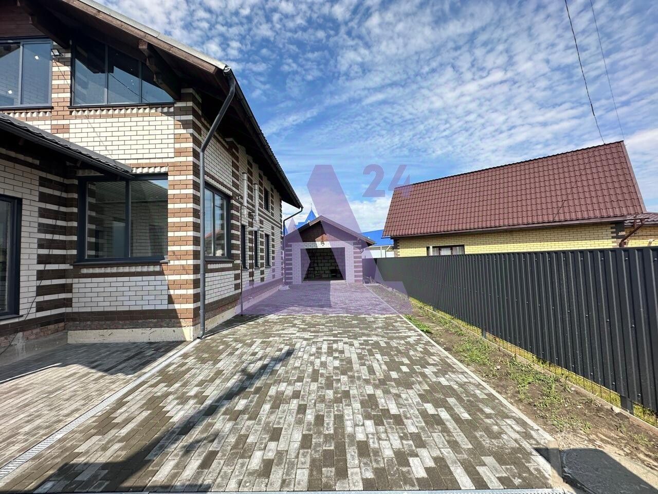 Участок частично облагорожен тротуарной плиткой и огорожен добротным забором с откатными воротами. На участке имеется гараж.