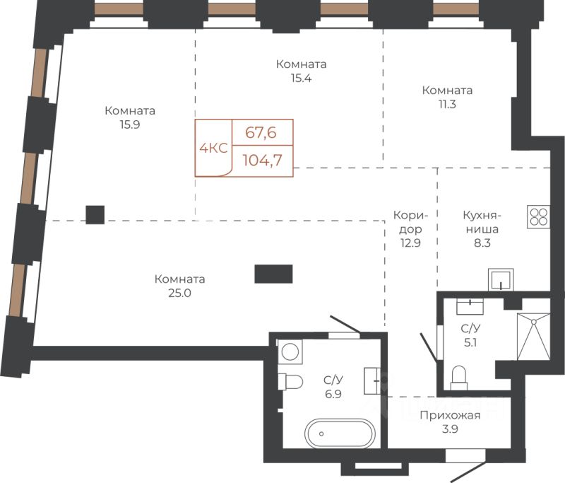 Продаётся 4-комнатная квартира в строящемся доме (Башня ''Столица'' (Корпус 1)), срок сдачи: I-кв. 2030, общей площадью 103.8 кв.м., на 4 этаже. Две башни формируют принципиально новое городское life-style пространство для жителеи и горожан. Единыи ансамбль площади Баварина и набережнои станет новым городским центром. АРХИТЕКТУРНЫЙ КОМПЛЕКС СТАНЕТ СИМВОЛИЧЕСКИМИ ВОРОТАМИ В ГОРОД И ЕГО ВИЗИТНОИ КАРТОЧКОИ И ОТРАЗИТ РАЗВИТИЕ БАРНАУЛА. Инфраструктура и расположение ТЕРРИТОРИЯ КОМПЛЕКСА - ВАЖНАЯ ТОЧКА, СВЯЗЫВАЮЩАЯ ДЕЛОВОИ И КУЛЬТУРНЫИ ЦЕНТРЫ БАРНАУЛА. БАШНИ ЗАМЫКАЮТ СТВОР УЛИЦЫ ЛЕНИНА И СЛУЖАТ ГОРОДСКИМИ ВОРОТАМИ НА НАБЕРЕЖНУЮ. Башни ''Столица'' и ''Мира'' будут буквально парить в воздухе у набережной. Дома установят на стилобат - платформу до высоты третьего этажа. Решение даст возможность пересекать территорию насквозь через комплекс к реке. Башни создают новые пешеходные связи со стороны улицы Ленина к набережнои.