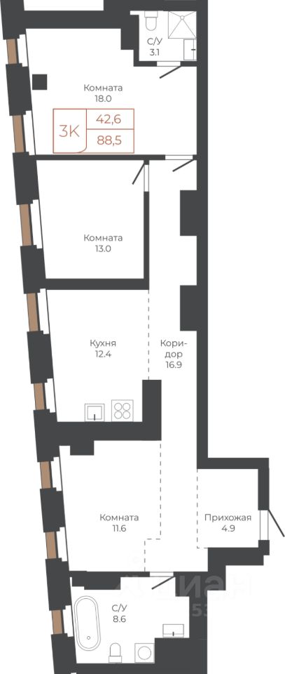 Продаётся 3-комнатная квартира в строящемся доме (Башня ''Столица'' (Корпус 1)), срок сдачи: I-кв. 2030, общей площадью 87.5 кв.м., на 27 этаже. Две башни формируют принципиально новое городское life-style пространство для жителеи и горожан. Единыи ансамбль площади Баварина и набережнои станет новым городским центром. АРХИТЕКТУРНЫЙ КОМПЛЕКС СТАНЕТ СИМВОЛИЧЕСКИМИ ВОРОТАМИ В ГОРОД И ЕГО ВИЗИТНОИ КАРТОЧКОИ И ОТРАЗИТ РАЗВИТИЕ БАРНАУЛА. Инфраструктура и расположение ТЕРРИТОРИЯ КОМПЛЕКСА - ВАЖНАЯ ТОЧКА, СВЯЗЫВАЮЩАЯ ДЕЛОВОИ И КУЛЬТУРНЫИ ЦЕНТРЫ БАРНАУЛА. БАШНИ ЗАМЫКАЮТ СТВОР УЛИЦЫ ЛЕНИНА И СЛУЖАТ ГОРОДСКИМИ ВОРОТАМИ НА НАБЕРЕЖНУЮ. Башни ''Столица'' и ''Мира'' будут буквально парить в воздухе у набережной. Дома установят на стилобат - платформу до высоты третьего этажа. Решение даст возможность пересекать территорию насквозь через комплекс к реке. Башни создают новые пешеходные связи со стороны улицы Ленина к набережнои.