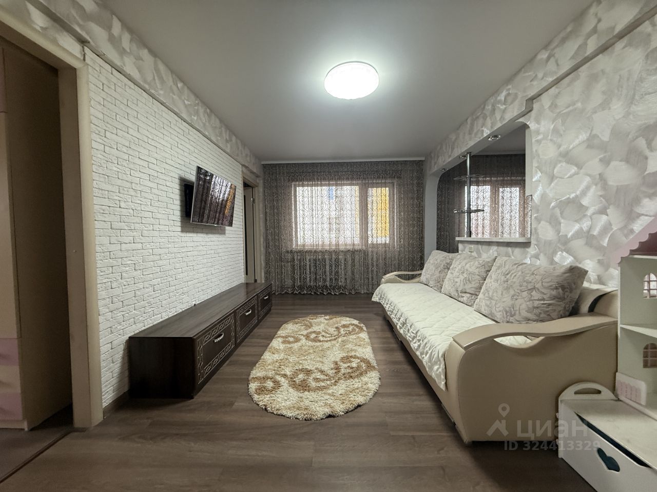 Продам 3-ком 2/5 Льнокомбинат, дом 83, Заречье, район Льнокомбинат, тихий и спальный район нашего города с очень развитой инфраструктурой, рядом все сосновый бор (прекрасное место для оздоровительных прогулок - летом и катания на лыжах зимой), берег реки Бия, магазины различной направленности, школа 9, детский сад, остановки маршрутного транспорта, больница и многое другое. Материал стен дома - крупнопанельный, общая площадь квартиры 49,4 кв.м., санузел совмещенный, состояние квартиры отличное (заходи живи), а именно: установлена новая входная металлическая дверь, пластиковые окна, полипропиленовые трубы, чугунные радиаторы, межкомнатные двери, на полу залита стяжка и постелен ламинат, выровнены стены, заменена электропроводка, натянуты потоки, в санузле стены выложены кафельной плиткой до потолка, заменена вся сантехника, а так же система разводки горячей, холодной воды, канализации и т.д. Кроме всего прочего, квартира оборудована балконом, который застеклен алюминиевыми рамами и обшит снаружи и изнутри. В подарок новому собственнику в квартире остается вся мебель и бытовая техника которая запечатлена на фотографиях, за исключением телевизора, электрического камина, обеденной зоны (стола со стульями) и детского домика.