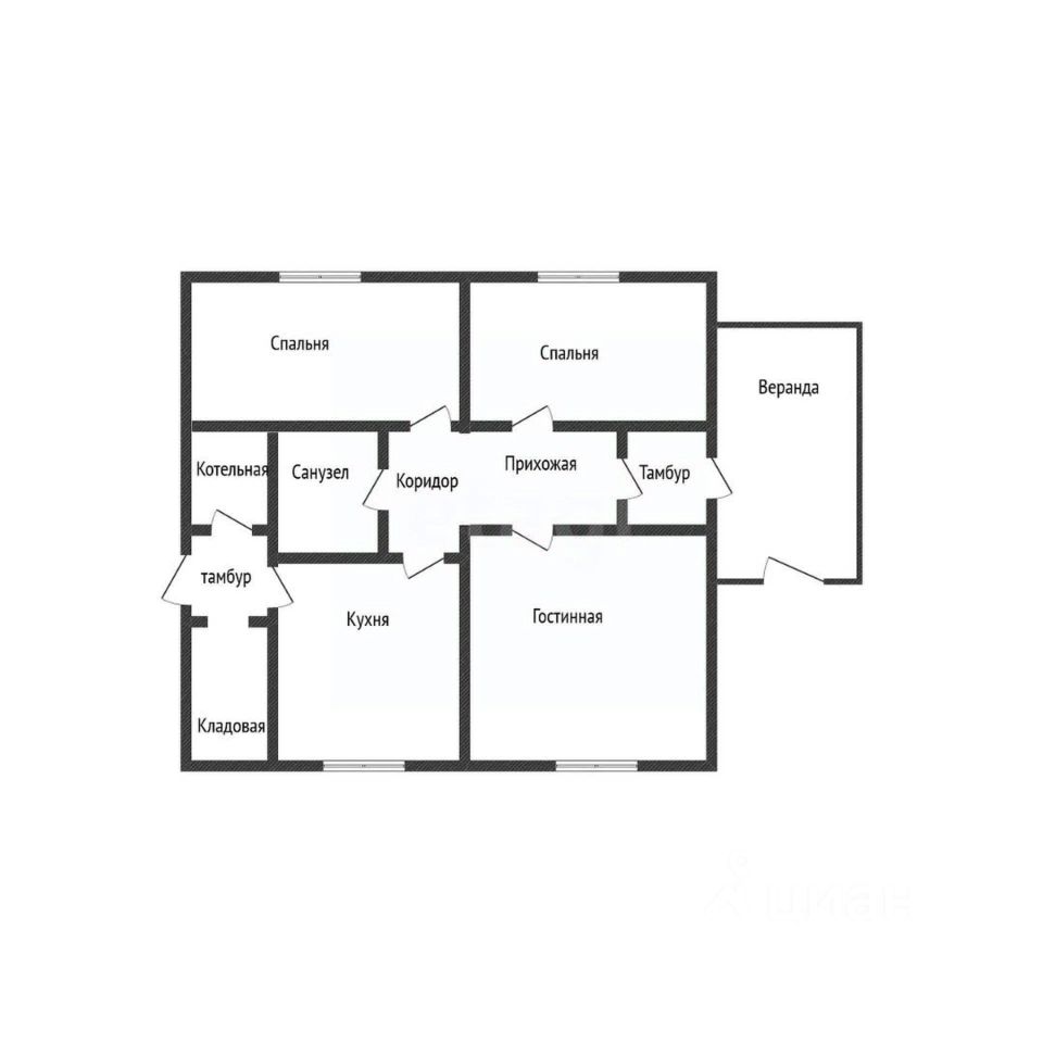 Дом 74,1 кв.м., с двумя входами: центральный и хозяйственный. Три раздельные комнаты, просторная кухня, раздельный санузел, особенно удобно для большой семьи, веранда, прихожая. Топочная имеет отдельный вход, в доме нет угольной пыли.