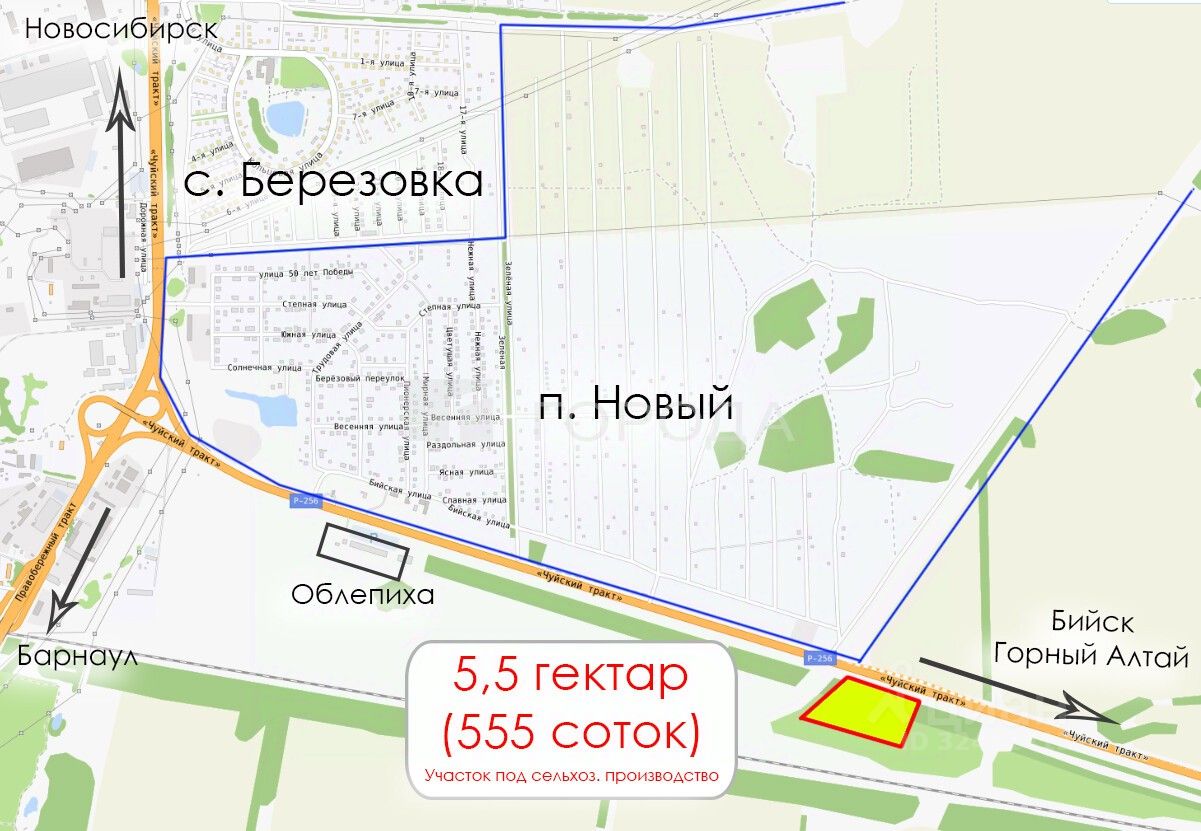 Основные характеристики: • Площадь: 5,5 гектар (555 соток) • Вид разрешенного использования (ВРИ): для сельскохозяйственного производства