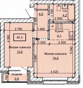 Общая площадь40,3 м2