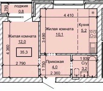 Общая площадь35,3 м2