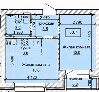 Общая площадь33,7 м2