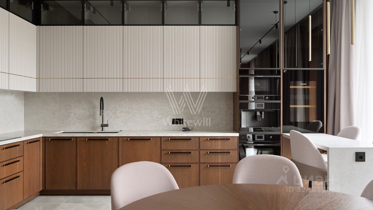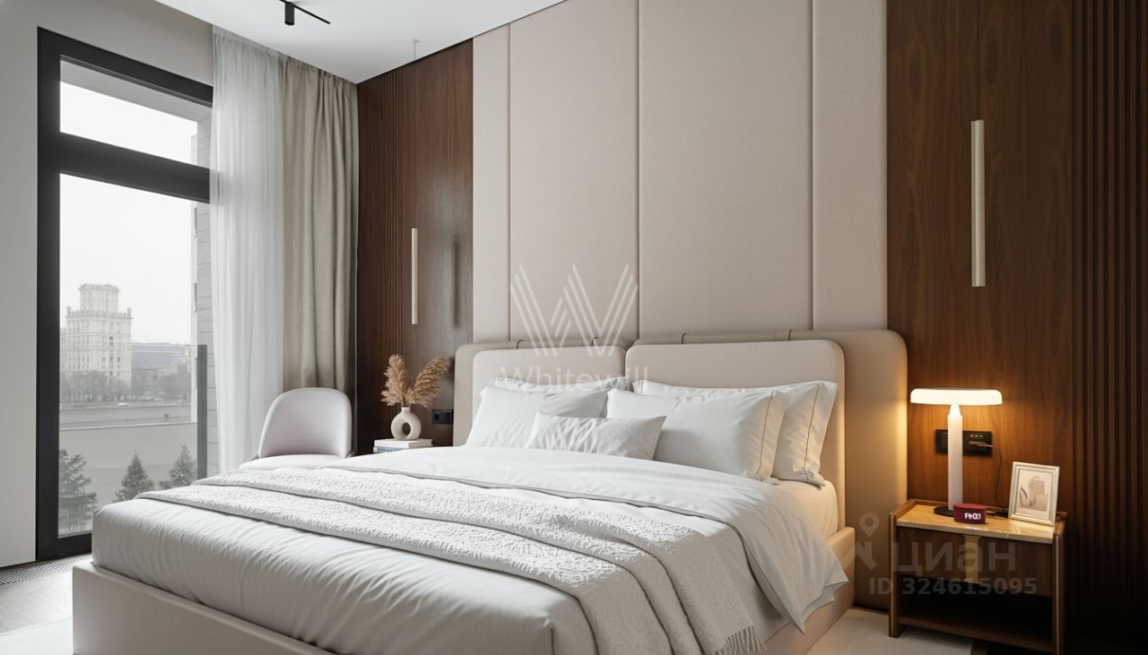 Просторная квартира с тремя спальнями и патио в комплексе премиум-класса Savvin River Residence на набережной Москвы-реки. Квартира общей площадью 177 м² расположена на четвёртом этаже. Интерьер оформлен в современном стиле. Установлены системы увлажнения воздуха и датчики протечек воды. Квартира укомплектована мебелью и бытовой техникой.