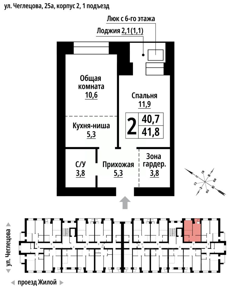 продам 2-к, Чеглецова, 25а корп. 26 746 520 ₽
