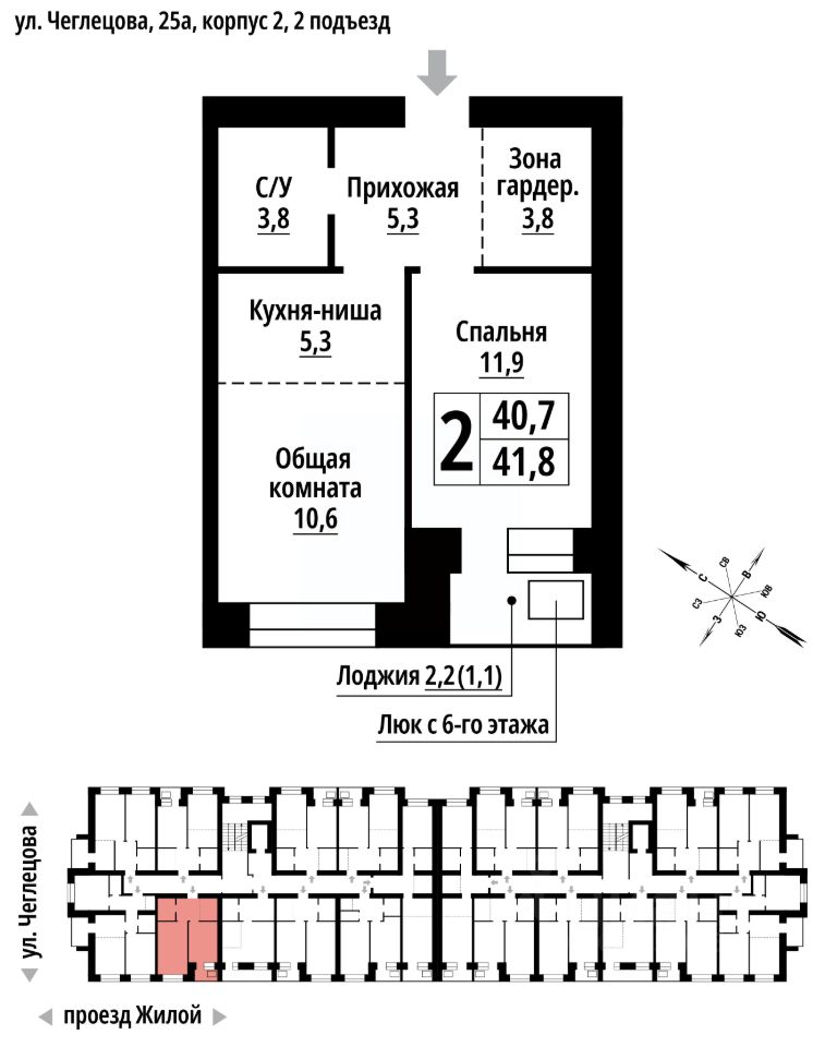 продам 2-к, Чеглецова, 25а корп. 26 604 400 ₽