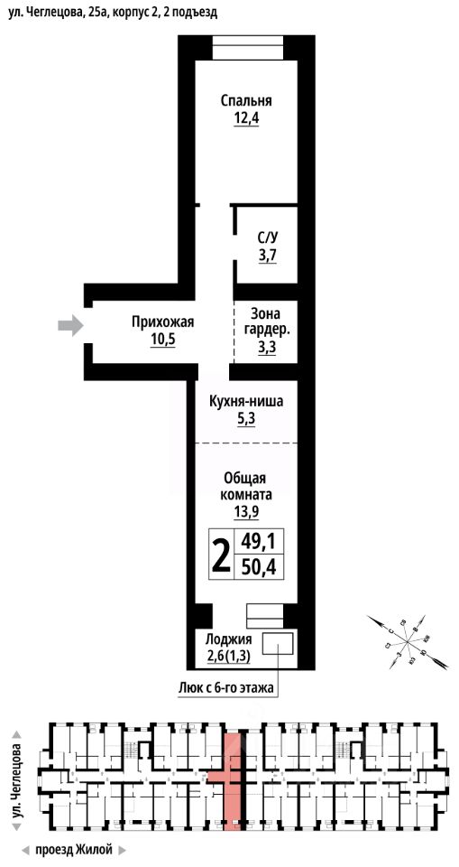 продам 2-к, Чеглецова, 25а корп. 27 761 600 ₽