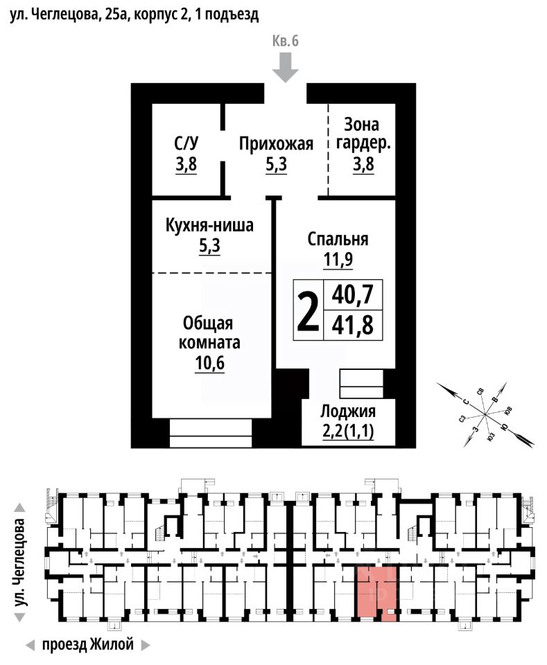 Продаётся 2-комнатная квартира в строящемся доме (Корпус 2), срок сдачи: II-кв. 2027, общей площадью 41 кв.м., на 1 этаже. ЖК ''Тургенев'' на ул. Чеглецова, 25а представляет из себя два кирпичных здания высотой 9 этажей. Предлагаем к покупке первый корпус, состоящий из двух подъездов. В каждом запроектированы квартиры с продуманной планировкой от 34,8-57,7 квадратных метров. Фасады выполнены в стилизованных формах с использованием остекленных лоджий и архитектурной подсветкой. Высота 1 и 9 этажа - 3 метра. На первом этаже предусмотрены нежилые помещения с гибким функциональным назначением.