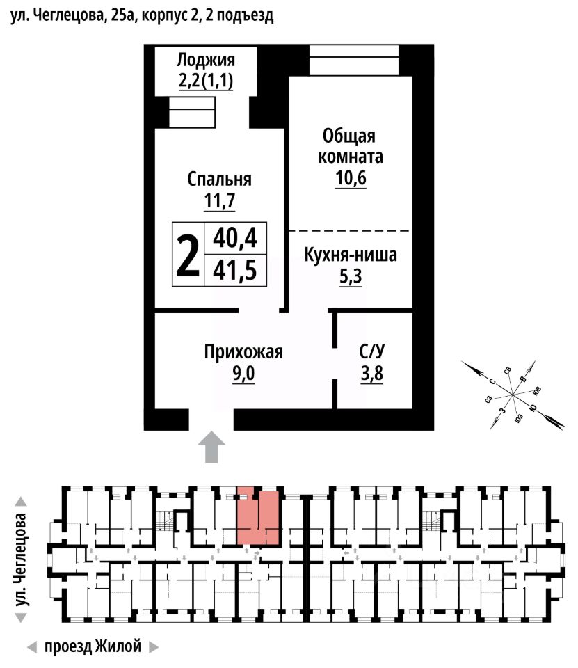 продам 2-к, Чеглецова, 25а корп. 26 702 250 ₽