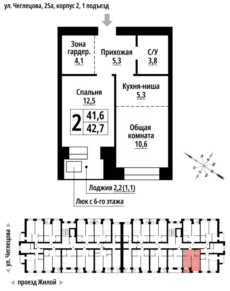 продам 2-к, Чеглецова, 25а корп. 26 746 600 ₽