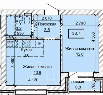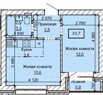 Общая площадь33,7 м2