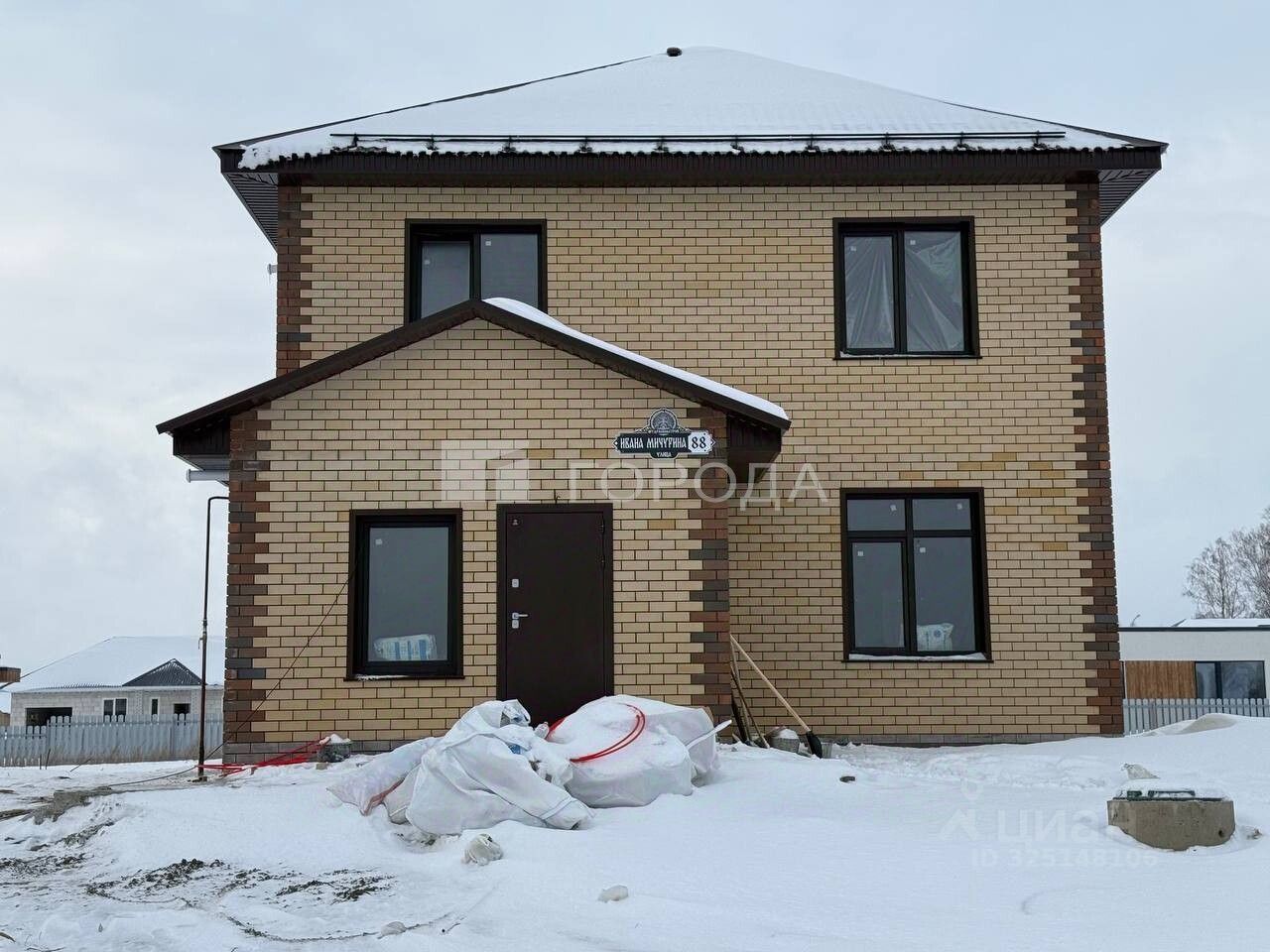 Дом построен в 2025 году из газоблоков с отделкой кирпич, имеет четыре изолированных комнаты, кухню-гостиную площадью 32,8 м2, два санузла общая площадь дома 137,6 м2. Высота потолков более 3 м, что создаёт ощущение простора и свободы. Дом имеет современный ремонт типа white box, что позволяет новым владельцам воплотить свои дизайнерские идеи.