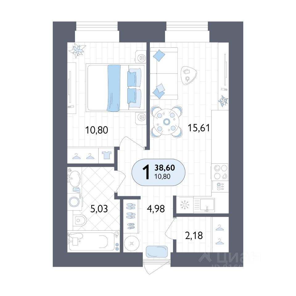 Общая площадь38,6 м2