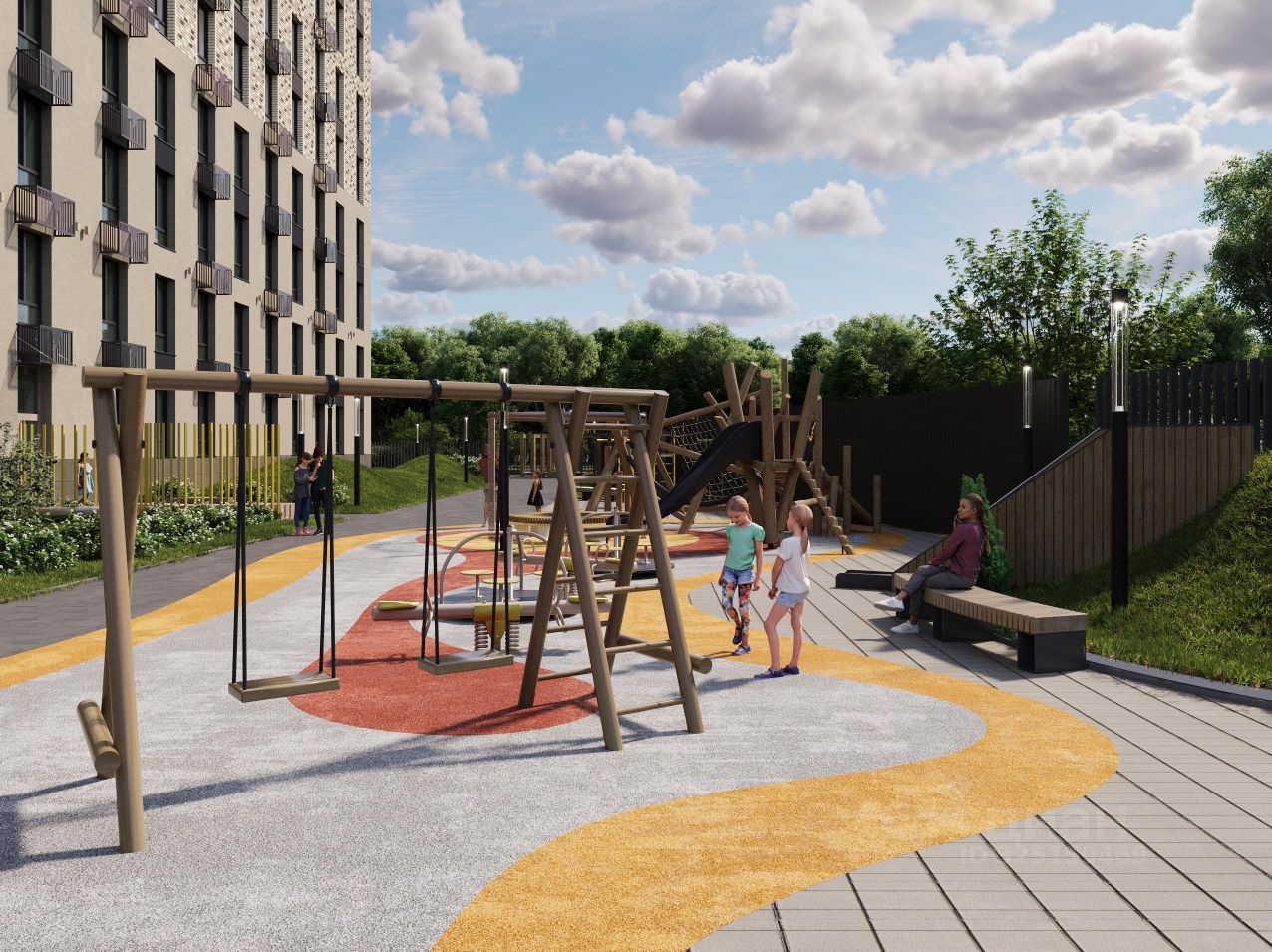 ПРИДОМОВАЯ ТЕРРИТОРИЯ: Контроль доступа на территорию новостройки, видеонаблюдение, круглосуточная охрана, Большая парковка (с существенным превышением нормативов), Детская площадка с усовершенствованным покрытием, Многофункциональная спортивная площадка, Зоны отдыха, ландшафтный дизайн с озеленением территории,