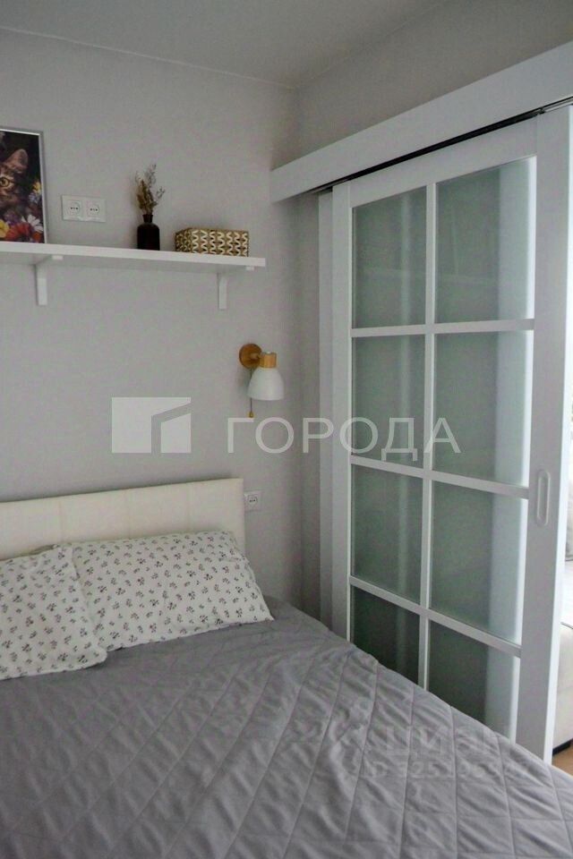 В гостинной комнате выделена зона спальни с раздвижной перегородкой. Установлена новая входная дверь с хорошей шумоизоляцией.
