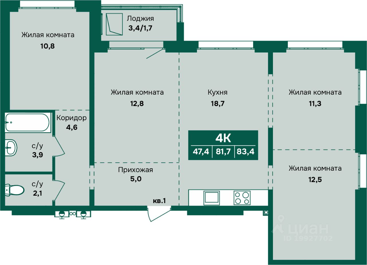 Общая площадь83,4 м2
