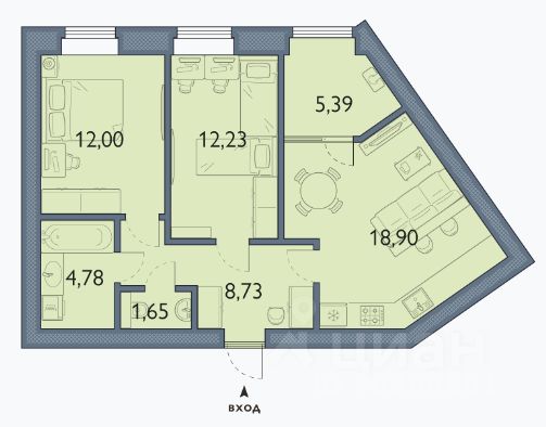 Общая площадь63,68 м2