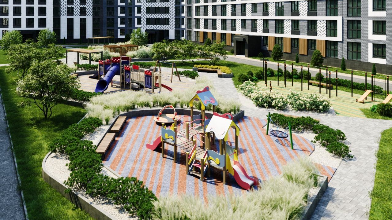 ПРИДОМОВАЯ ТЕРРИТОРИЯ: Контроль доступа на территорию новостройки, видеонаблюдение, ''Двор без машин'' - Огороженная парковка с внешней стороны дома, Детская площадка с усовершенствованным покрытием, Многофункциональная спортивная площадка, беговая дорожка, Зоны отдыха, ландшафтный дизайн, рядом парк,