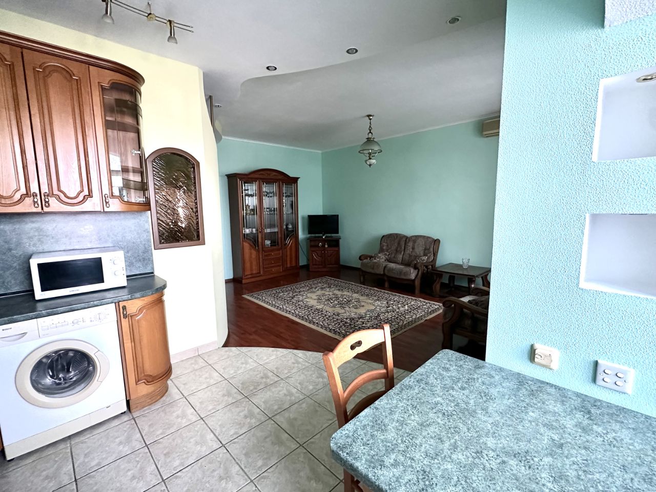 Квартира полностью меблирована и оборудована всей необходимой техникой, включая водонагреватель и стиральную машину. Санузел раздельный.