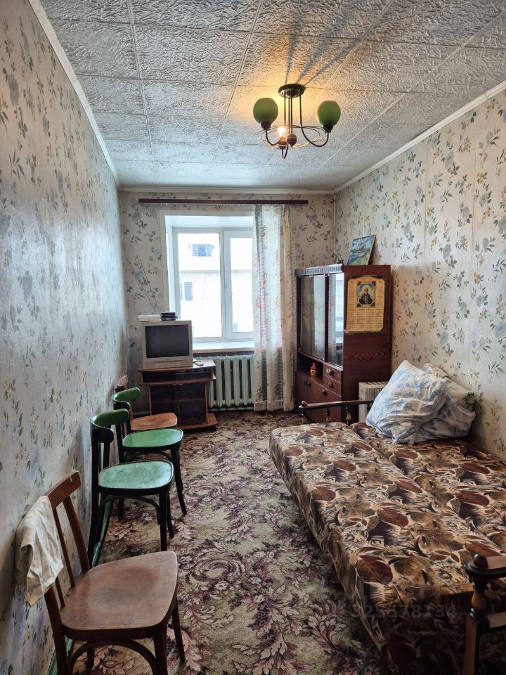 В гостиной установлен телевизор с цифровым ТВ, имеется шкаф для хранения вещей. Из мебели также есть обеденный стол и стулья.