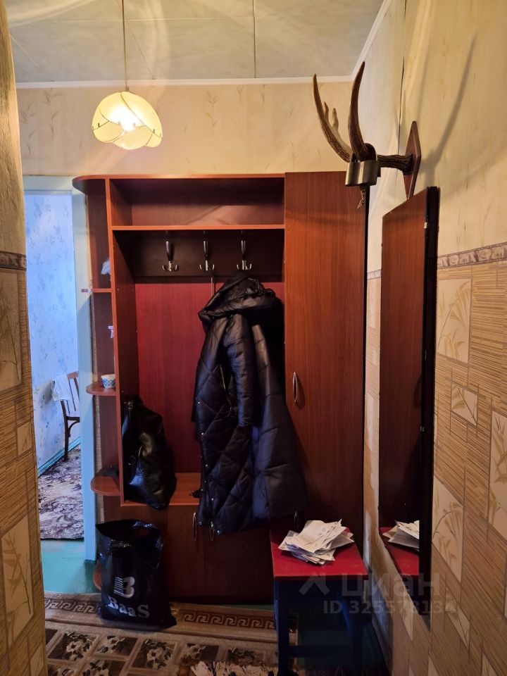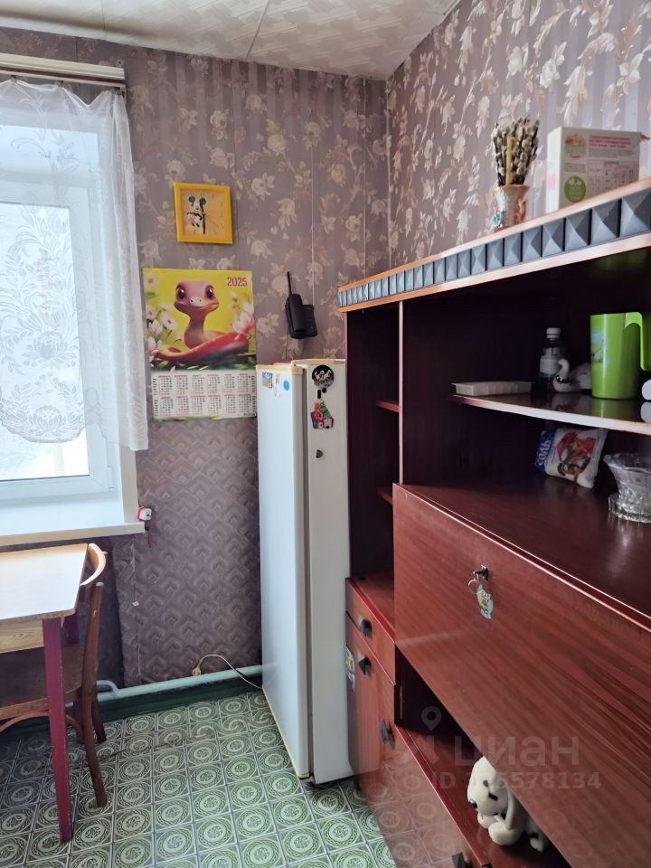 Кухня оборудована необходимой техникой: холодильник, плита и стиральная машина. В комнате есть шкафы для хранения.