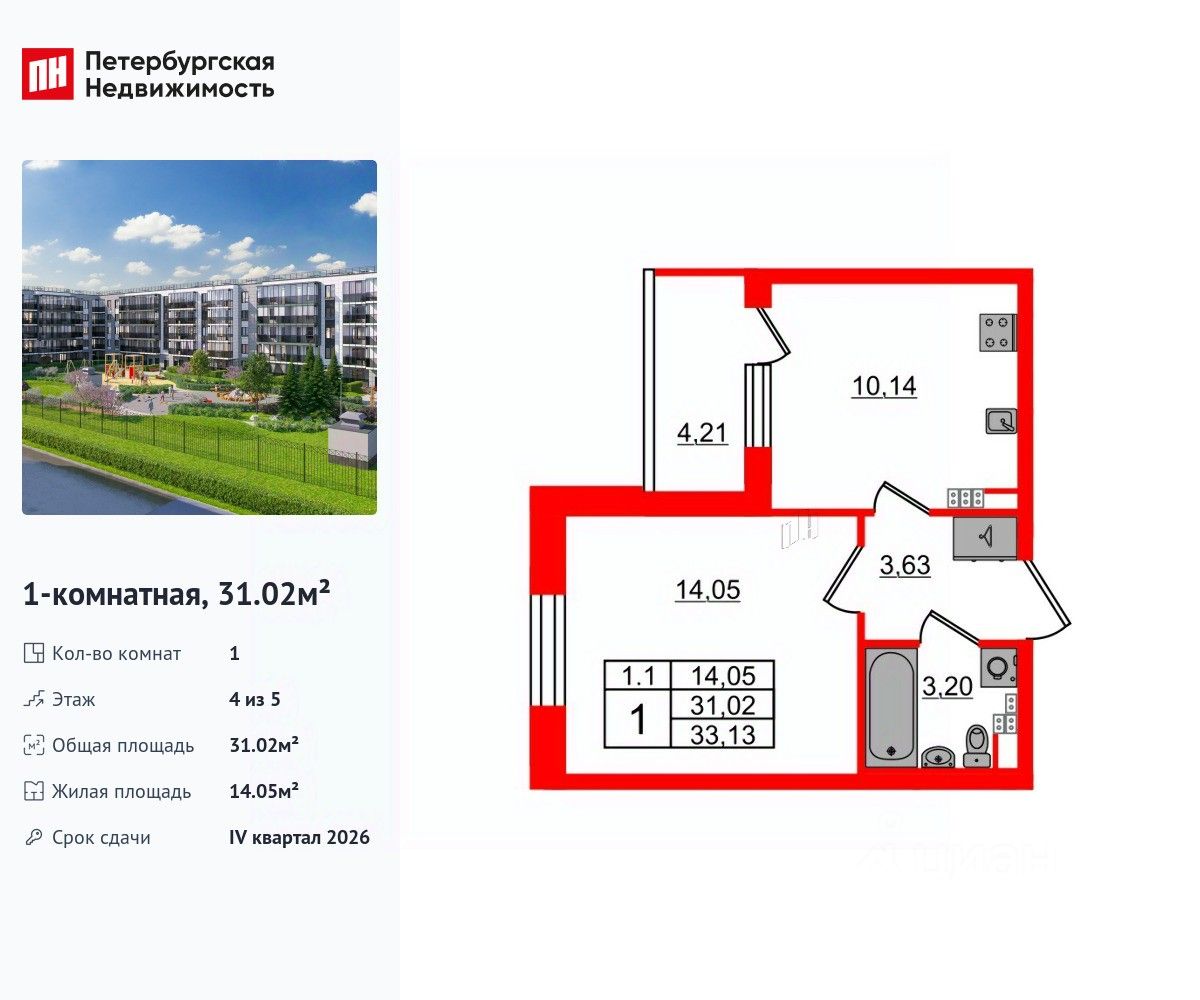 Общая площадь31,02 м2