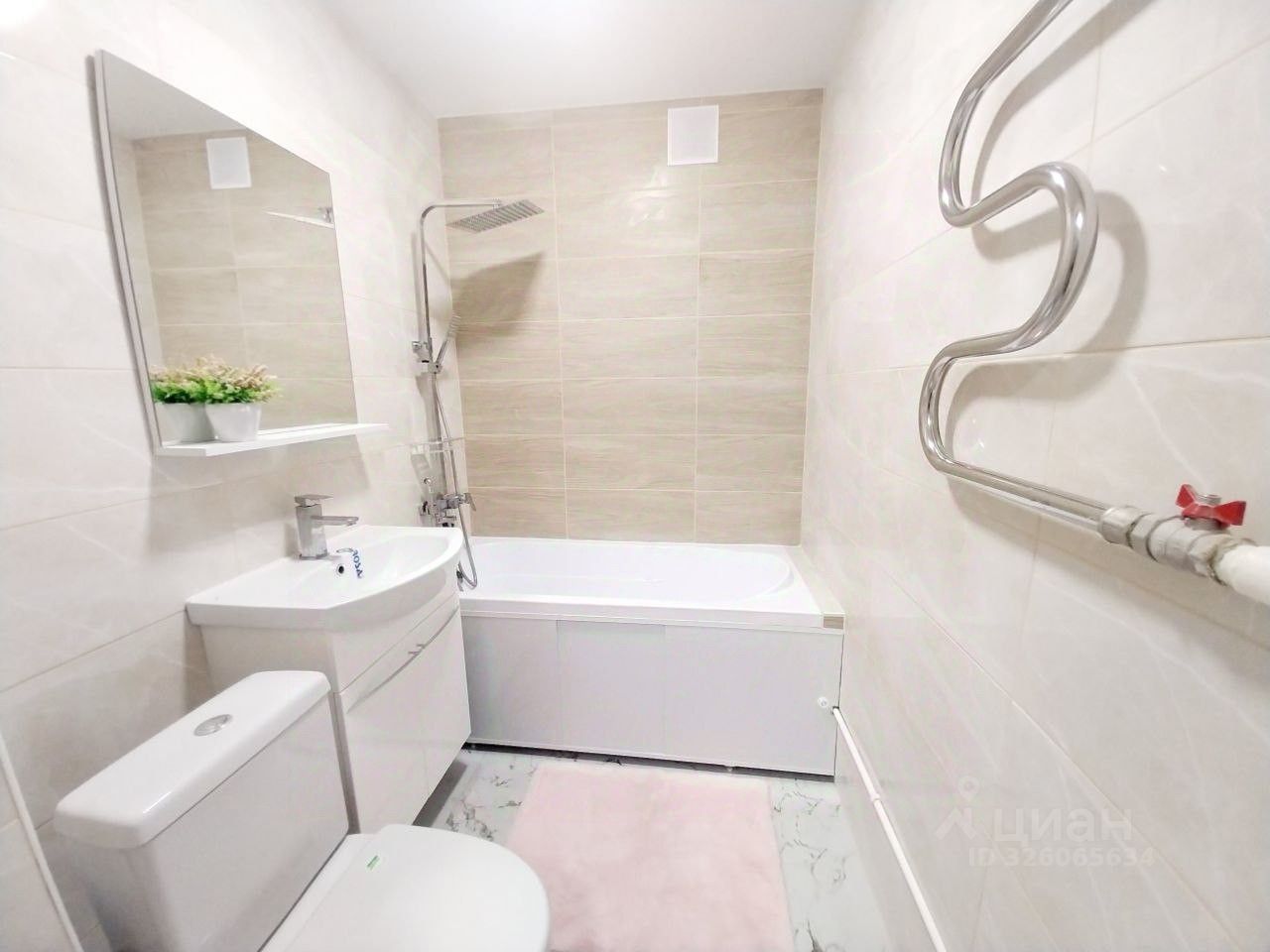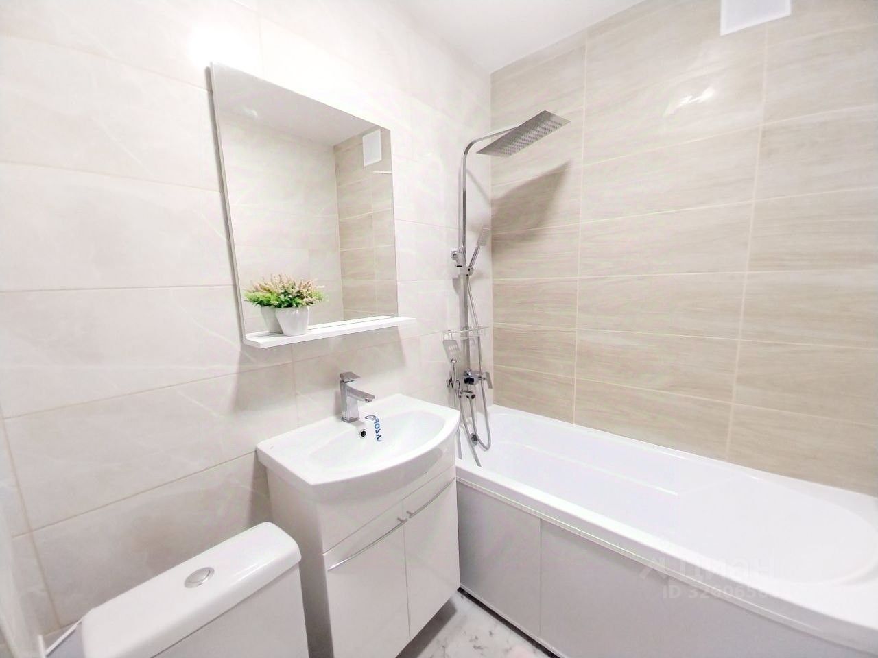 Выполнено: натяжные потолки, ламинат в комнате, кухне и коридоре — практично и аккуратно, ванная комната полностью в керамической плитке — удобно в уходе и долговечно.