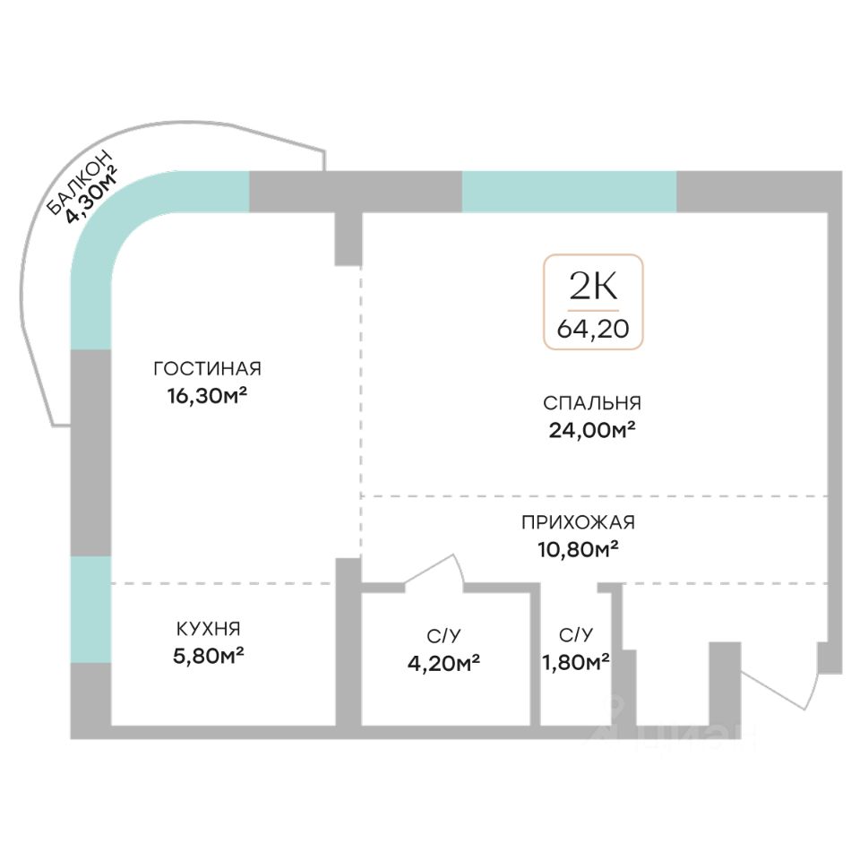 Общая площадь64,2 м2