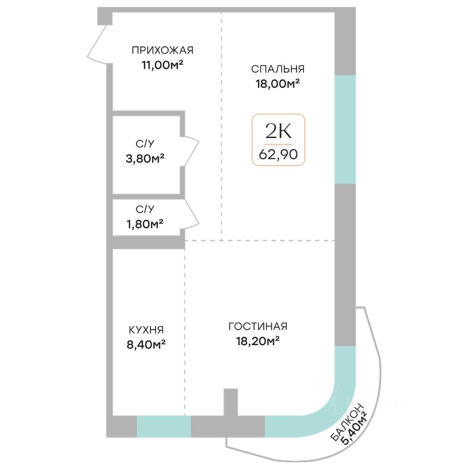 Общая площадь62,9 м2