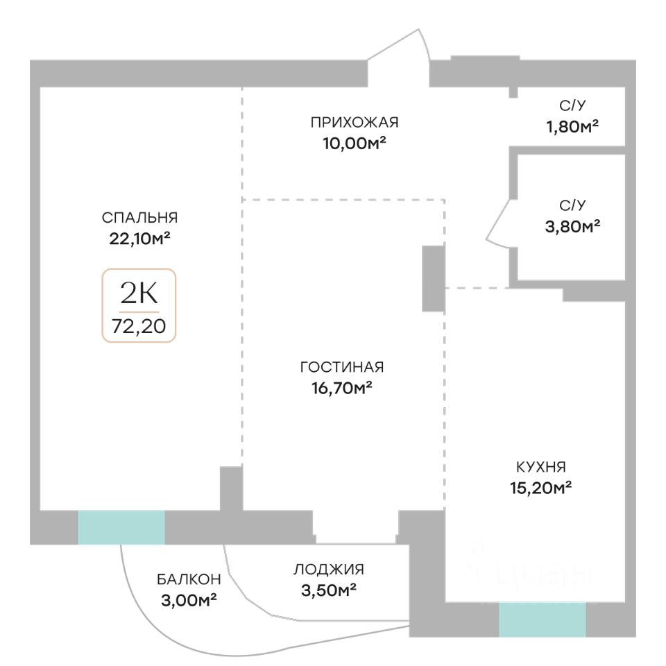 Общая площадь72,2 м2