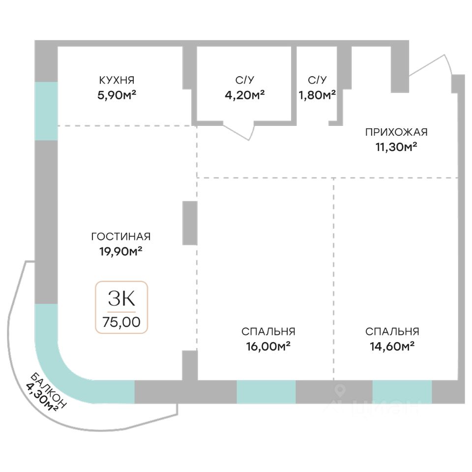Общая площадь75 м2