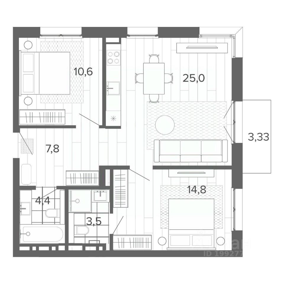 Продаётся 3-комнатная квартира в строящемся доме (Корпус 1 (БС 1,2,3)), срок сдачи: II-кв. 2026, общей площадью 69.05 кв.м., на 7 этаже. Новый жилой комплекс ''Вышка зелёный квартал на горе'' от группы компаний ''Мой дом'' расположен по адресу: г. Барнаул, по ул. Змеиногорский тракт.