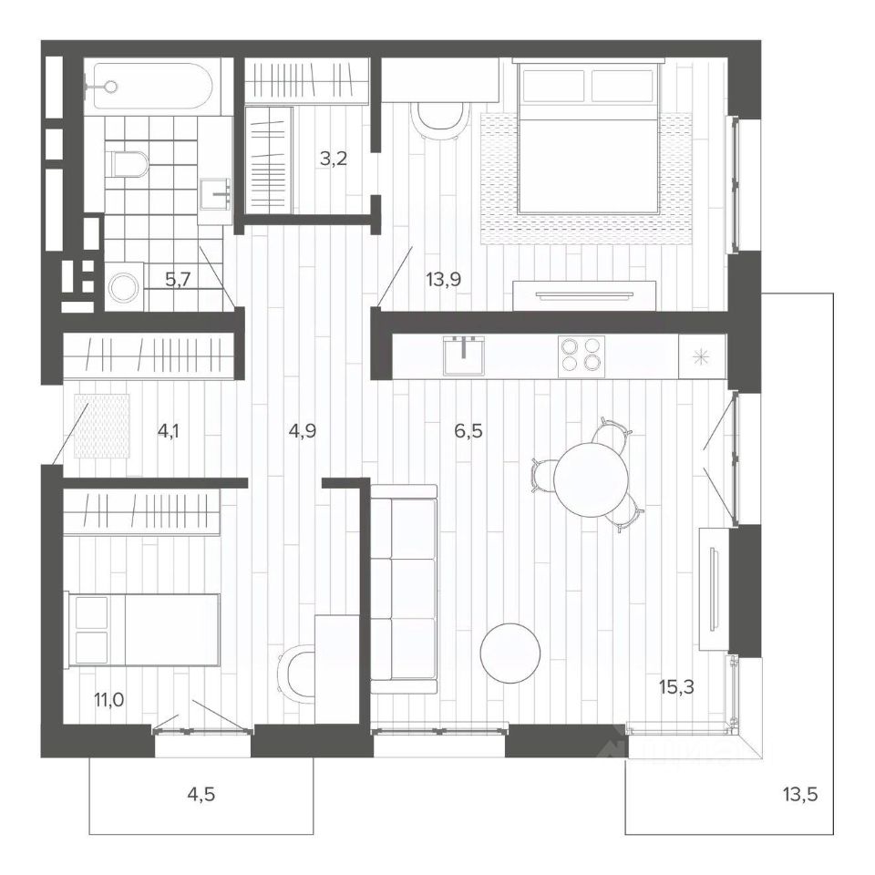 Продаётся 3-комнатная квартира в строящемся доме (Корпус 1 (БС 1,2,3)), срок сдачи: II-кв. 2026, общей площадью 82.83 кв.м., на 8 этаже. Новый жилой комплекс ''Вышка зелёный квартал на горе'' от группы компаний ''Мой дом'' расположен по адресу: г. Барнаул, по ул. Змеиногорский тракт.