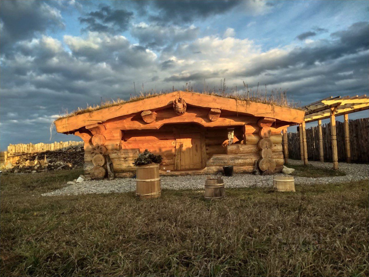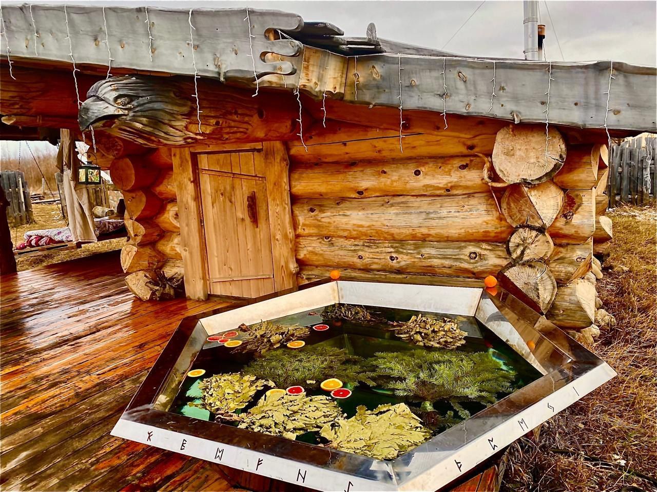 Действующий банный комплекс - расположен на берегу реки. В него входит - 2 просторные бани - одна из кедра другая из сосны, подогреваемый банный чан - на берегу реки, 2 домика для отдыха, дровянник, и отдельно стоящий теплый цивилизованный туалет.