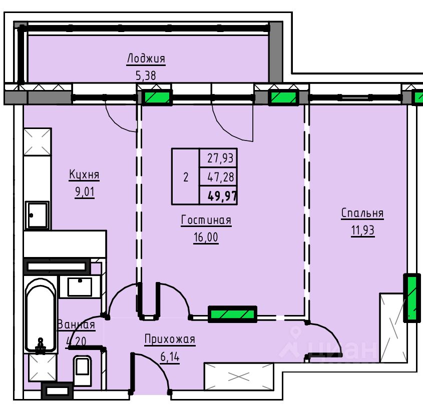 Общая площадь49,97 м2